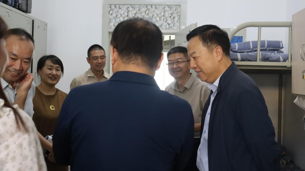 随后李校长一行前往金融学院新生宿舍,走访慰问刚刚入住的新同学。在随机进入的宿舍内,他与同学、家长们亲切交谈,细致询问大家的住宿适应情况、生活需求及入学初体验,并代表学校向新生表示热烈欢迎,希望他们树立远大志向,积极参与学术与实践锻炼,养成良好的学习和生活习惯。