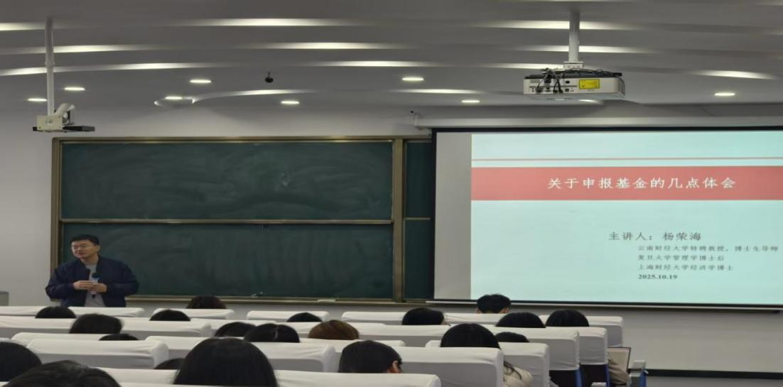 首先,杨荣海教授强调大学基金申报的重要性——这既是高校教师学术成果的关键展示途径,也对个人学术发展意义重大。他详细解读了当前基金申报的具体要求,提醒师生需规避各类可能导致申报被拒的问题,务必精细化处理每一个细节,提升申报材料的通过率。