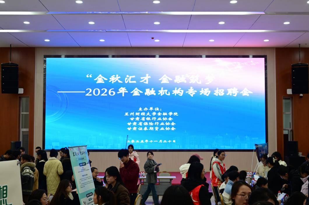 为更好服务毕业生就业,深化校企协同合作,助力毕业生与就业岗位精准对接,11月20日下午,学院联合甘肃省银行业协会、甘肃省保险行业协会、甘肃证券期货业协会,在和平校区博雅堂成功举办“金秋汇才,金融筑梦”2026年金融机构专场招聘(双选)会。